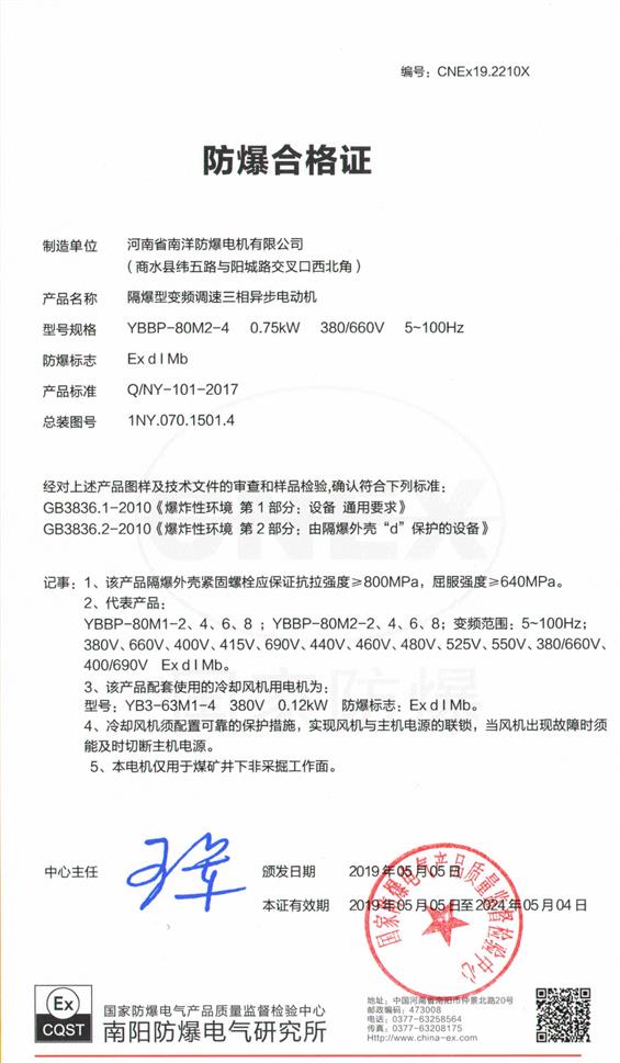 • YBBP變頻防爆電機生產(chǎn)廠家: 河南省南洋防爆電機有限公司