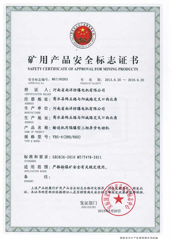 輸送機防爆電機主要用于煤礦井下的皮帶輸送機,刮板輸送機等配套用電機,機座由鋼板焊接成形,風罩,接線盒,絕緣結(jié)構(gòu)采取加強措施,防止碎石墜落砸傷電機,已適應煤礦井下的復雜環(huán)境。防爆性能符合GB3836.1《爆炸性環(huán)境用防爆電氣設(shè)備 通用要求》和GB3836.2《爆炸性環(huán)境用防爆電氣設(shè)備隔爆性電氣設(shè)備d》的規(guī)定,適用于煤礦井下具有可燃性氣體或煤塵與空氣形成爆炸性氣體環(huán)境的場所,防爆標志為ExdI Mb。
